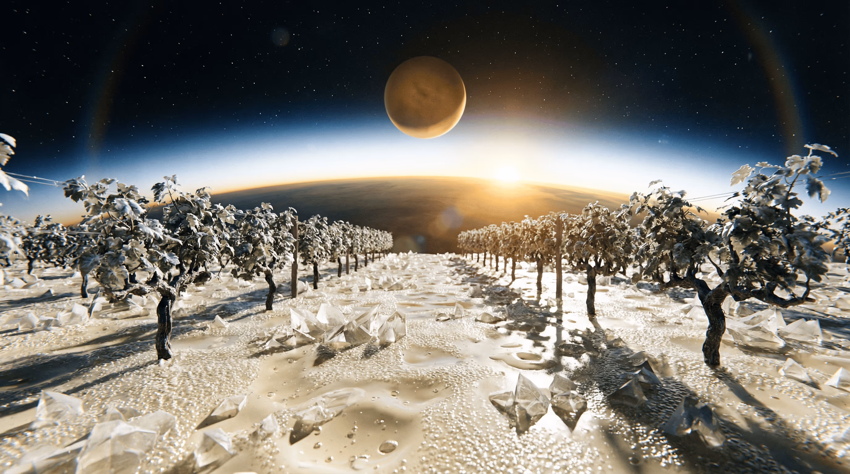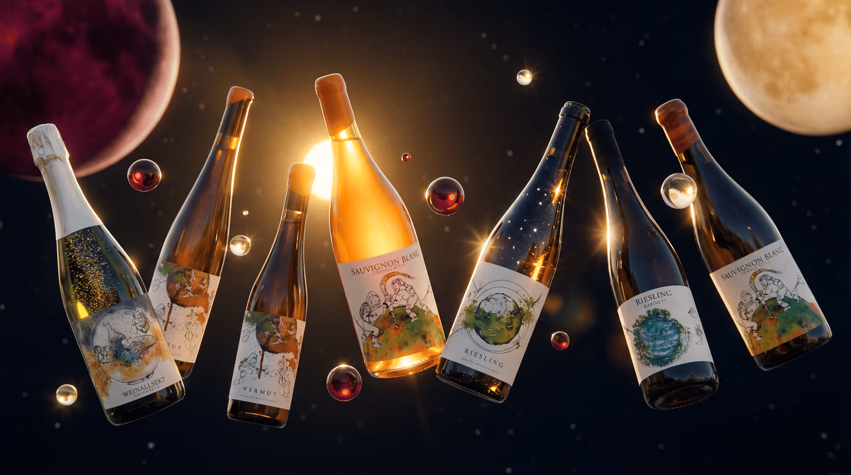 Varianten einer Rebsorte wie Kabinett, Sekt oder Wermut kreisen als Monde um ihren Planeten.